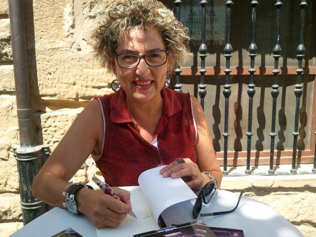 1º La presentación de la autora por la Ilma. Sra. Inmaculada Laredo Fuertes, Alcaldesa del Ayuntamiento de Leza (Araba) y el montaje de los libros junto a las botellas y una copa vacía de vino, dentro de la Bodega Laredo Villanueva Anaiak.
