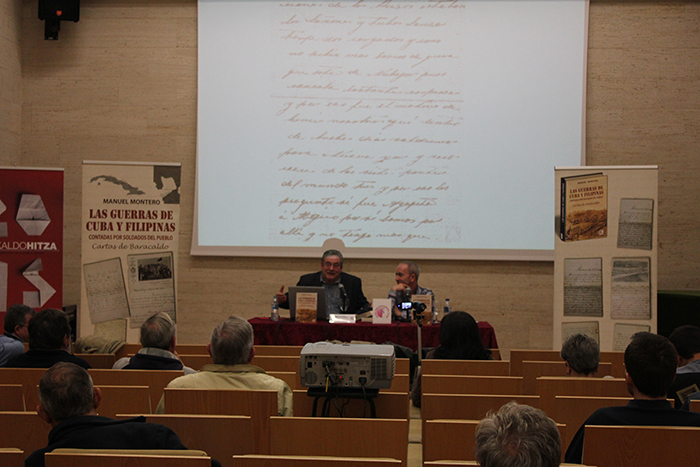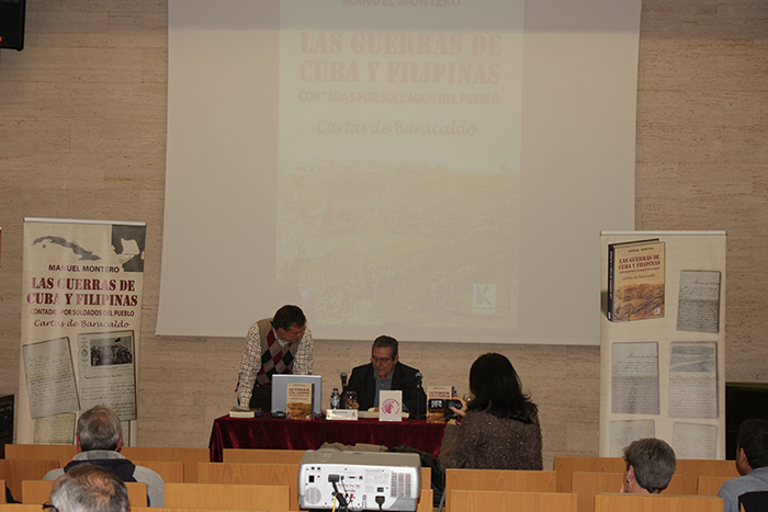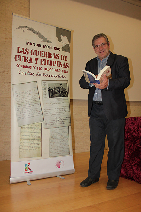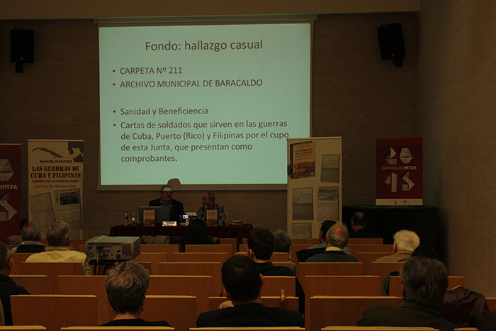 Presentacion de LAS GUERRAS DE CUBA Y FILIPINAS CONTADAS POR SOLDADOS DEL PUEBLO. CARTAS DE BARACALDO en CENTRO CÍVICO CLARA CAMPOAMOR (2015-05-19)A veces los temas surgen de repente, rebuscando en un archivo, poniendo en orden algunas carpetas. Es más o menos lo que le ocurrió al historiador Manuel Montero en el archivo de Barakaldo: se topó con unos documentos que le ofrecían información interesante. Eran las cartas que los barakaldeses que habían ido a las guerras de Cuba y Filipinas habían mandado a sus familias.