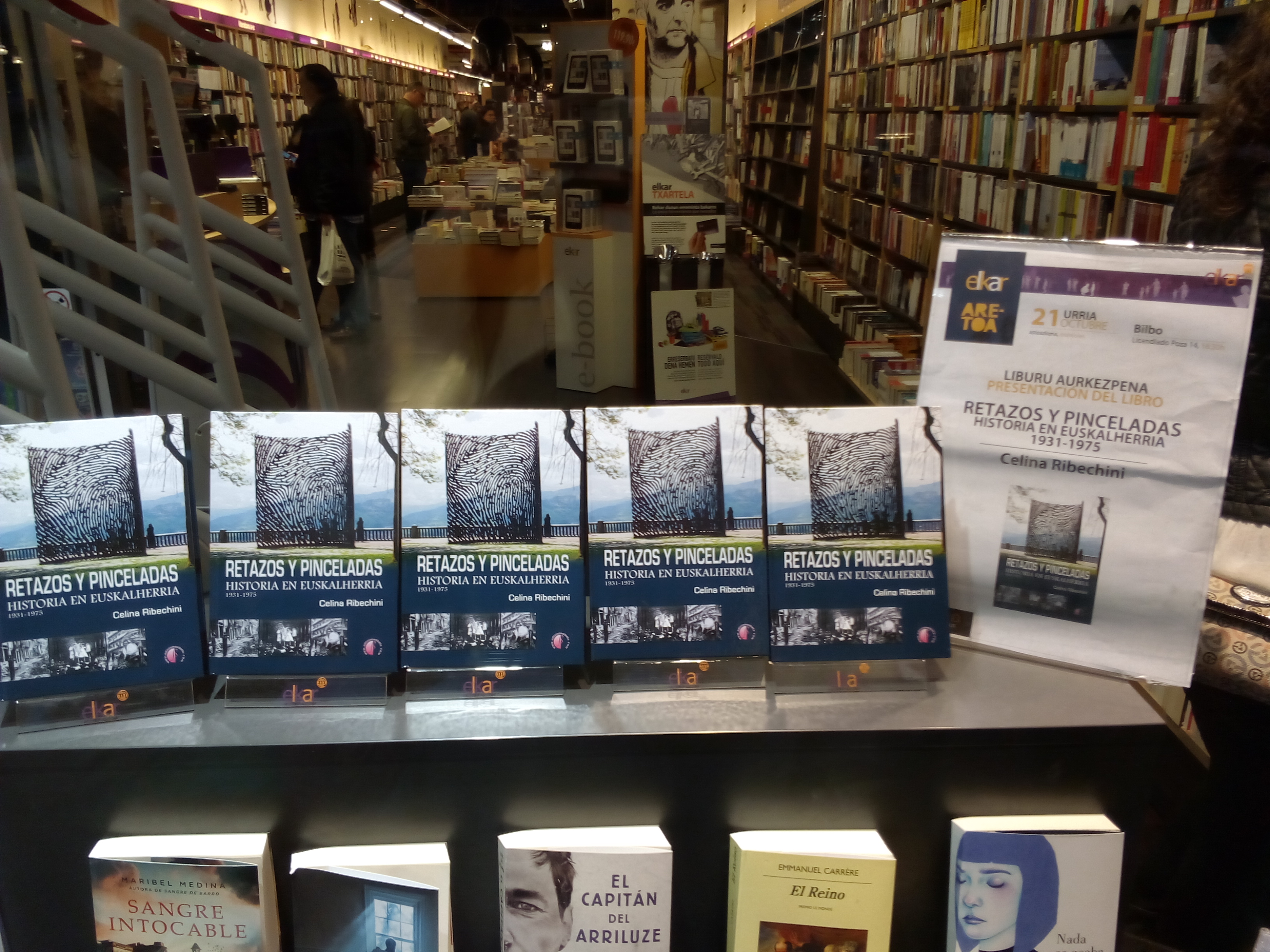 Presentacion de RETAZOS Y PINCELADAS. Historia en Euskalherria. 1931-1975 (2ª ED.) en Librería ELKAR POZA (2015-10-21)RETAZOS Y PINCELADAS. El 21 de octubre DE 2015 tuvo lugar la presentación del libro Retazos y Pinceladas en la librería ELKAR POZAS de Bilbao.