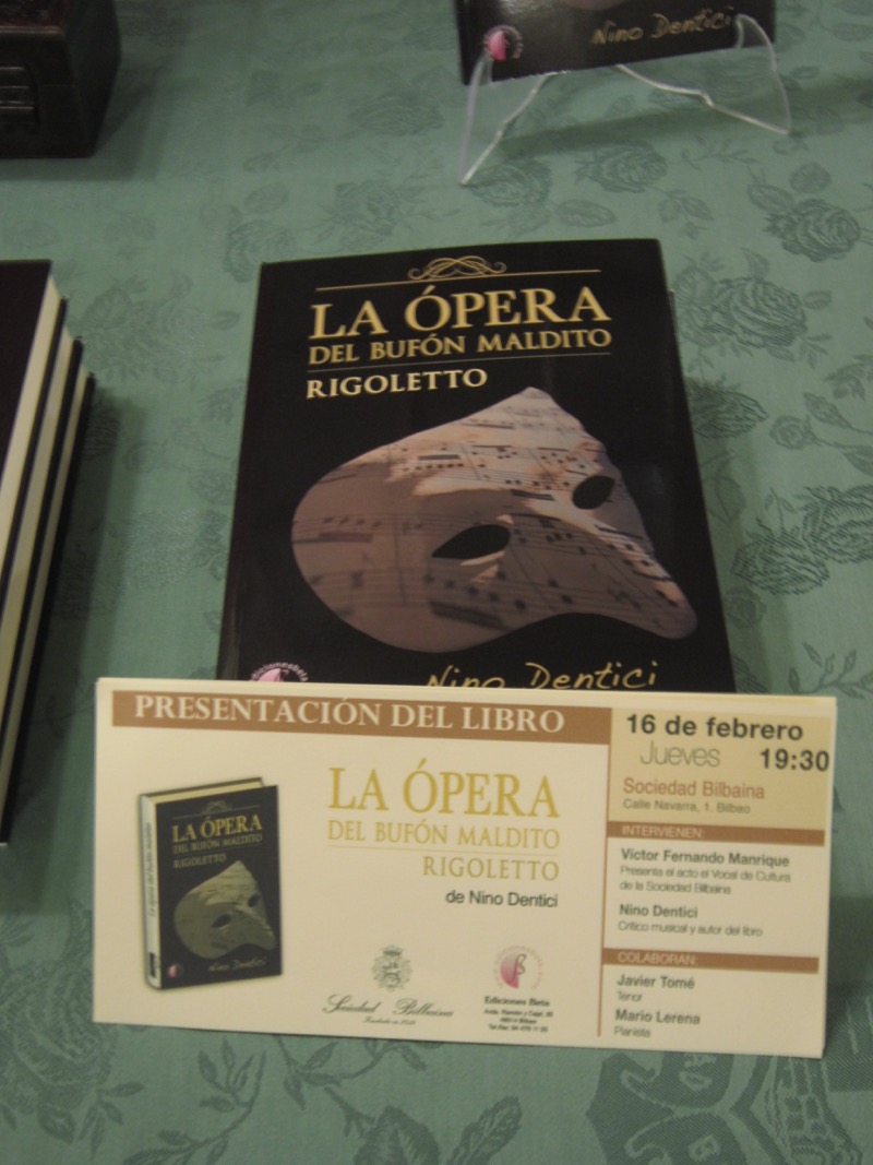Presentacion de LA ÓPERA DEL BUFÓN MALDITO. RIGOLETTO en Sociedad Bilbaina (2017-02-16)Presentación del libro La ópera del bufón maldito. Rigoletto de Nino Dentici en la Sociedad Bilbaina de Bilbao.