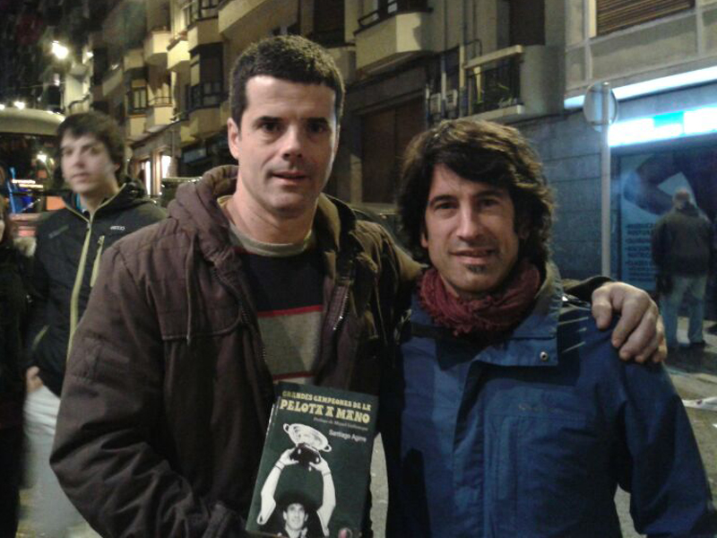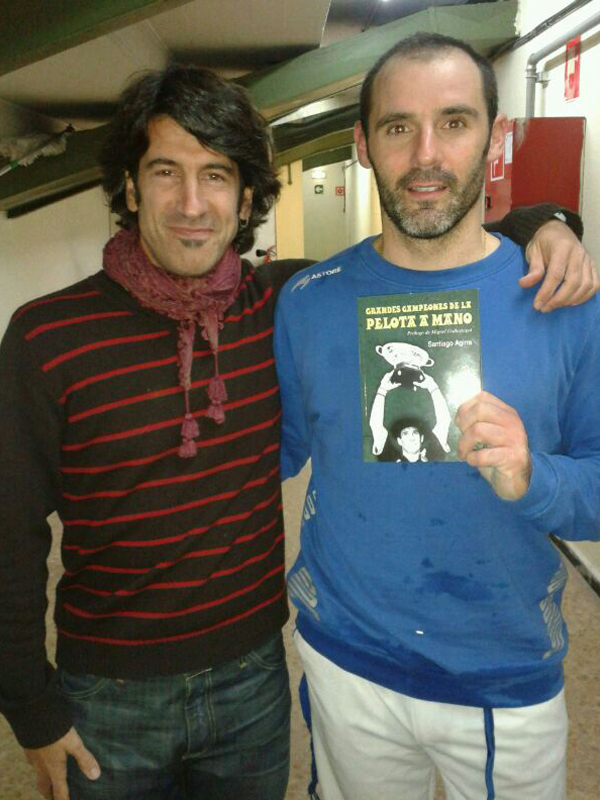 Otros eventos de GRANDES CAMPEONES DE LA PELOTA A MANO (3ª edición) en edicionesbeta (2013-12-01)El mundo de la pelota recibe con los brazos abiertos al recientemente editado libro "Grandes campeones de la pelota a mano". En la primera foto, el autor, Santi Agirre con XALA, el campeón Manomanista de 2011. En la segunda con EUGI campeón en 1996, 1999 y 2000. En la tercera imagen con XABIER EUSKITZE, comentarista de pelota de ETB.