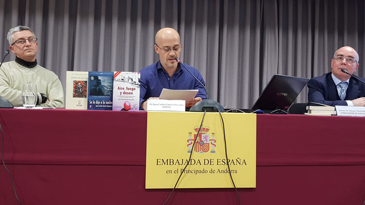 Presentacion de AIRE, FUEGO Y DESEO (3ª ED.) en Embajada de España en Andorra (2018-03-12)Presentación "Aire, fuego y deseo" en Andorra