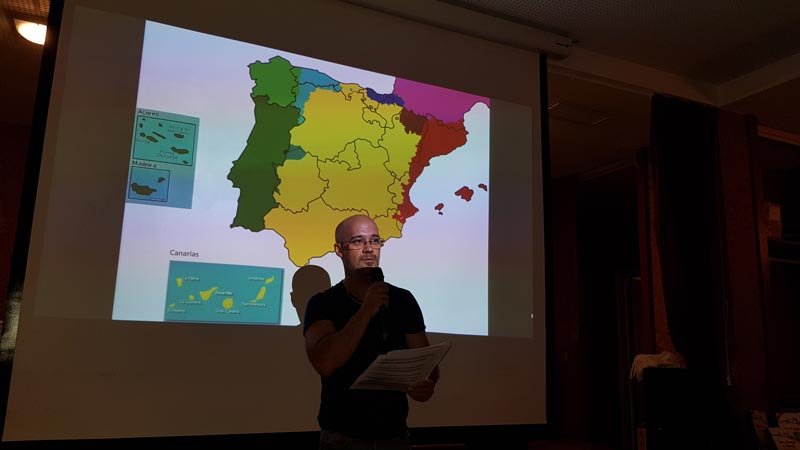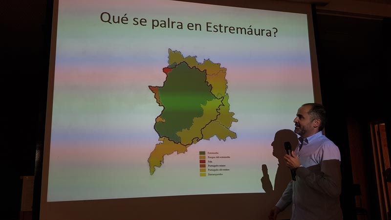 Ante un numeroso público que llenaba el Salón de Actos, comenzó a las 18:00 horas, con la apertura del evento a cargo del antropólogo e investigador Manuel Trinidad, las ponencias de Juan Carlos Márquez Durán, Manuel Sánchez (de Além Guadiana) y Daniel Gordo (de OSCEC Estremaúra), representando a "a fala", "estremeñu" y "português" respectivamente, lenguas minoritarias que hoy en día se hablan en Extremadura. Una fecha mágica, fácil de recordar, el 18-8-2018, presagio de que además de histórica iba a salir perfecta. Y así fue. Enriquecedora, didáctica, reveladora y exposición amena gracias a sus ponentes. No quiero pasar por alto el magnífico trato que nos dispensó el Ayuntamiento, así como la generosa cobertura que la prensa y televisión extremeñas han dedicado a este día tan importante para nuestras lenguas. Por lo tanto, ante este éxito del "I Día de las Lenguas de Extremadura, no hay excusa para ponerse a trabajar para el año 2019 en el que será el "II Día de las Lenguas de Extremadura", en esta ocasión en una localidad extremeñoparlante.