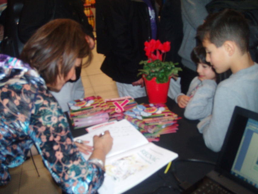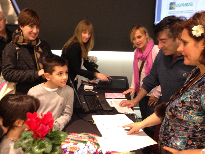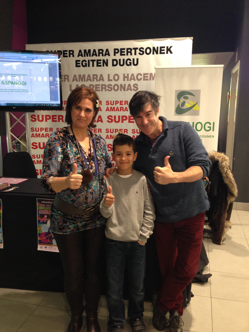 Presentacion de RECNAC y los cristales mágicos / RECNAC eta kristal magikoak en SUPER AMARA (Riveras de Loyola) (2014-02-15)La Asociación ASPANOGI nos invitó, tanto a mí, Susana Rodríguez Santamaría, de Cuenta Conmigo Tu Cuento, como a Carlos San Vicente, ilustrador del mismo, al acto que organizaron en el día Internacional del Niño con Cáncer, 15 de febrero. Al finalizar el acto estuvimos firmando ejemplares del cuento.