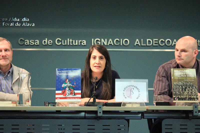 Presentacion de ENTRE WASHINGTON Y GERNIKA en Casa de Cultura Ignacio Aldecoa (2019-05-23) Presentación de los libros sobre la Guerra Civil en el País Vasco: Militares y Guerra Civil en el País Vasco. Leales, sublevados y geográficos de Germán Ruiz Llano y Entre Washington y Gernika. La Guerra Civil en el País Vasco en la prensa norteamericana (1936-1939) de Linda Palumbo Olszanski en la Casa de Cultura Ignacio Aldecoa de Vitoria-Gasteiz.