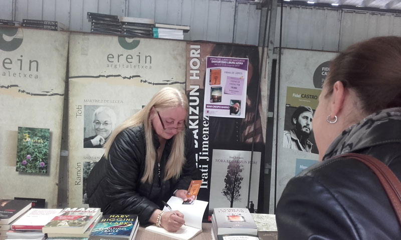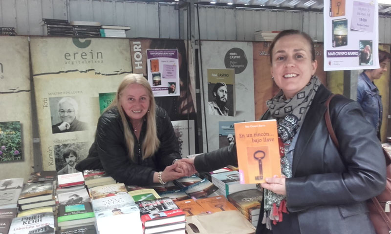 Firma de EN UN RINCÓN... BAJO LLAVE en Feria del Libro de Santurtzi 2019 (2019-05-10)Firmas de ejemplares de los poemarios En un rincón... bajo llave y Al final del camino... te encontraré de Mar Crespo Barrio en la Feria del Libro de Santurtzi (Bizkaia).