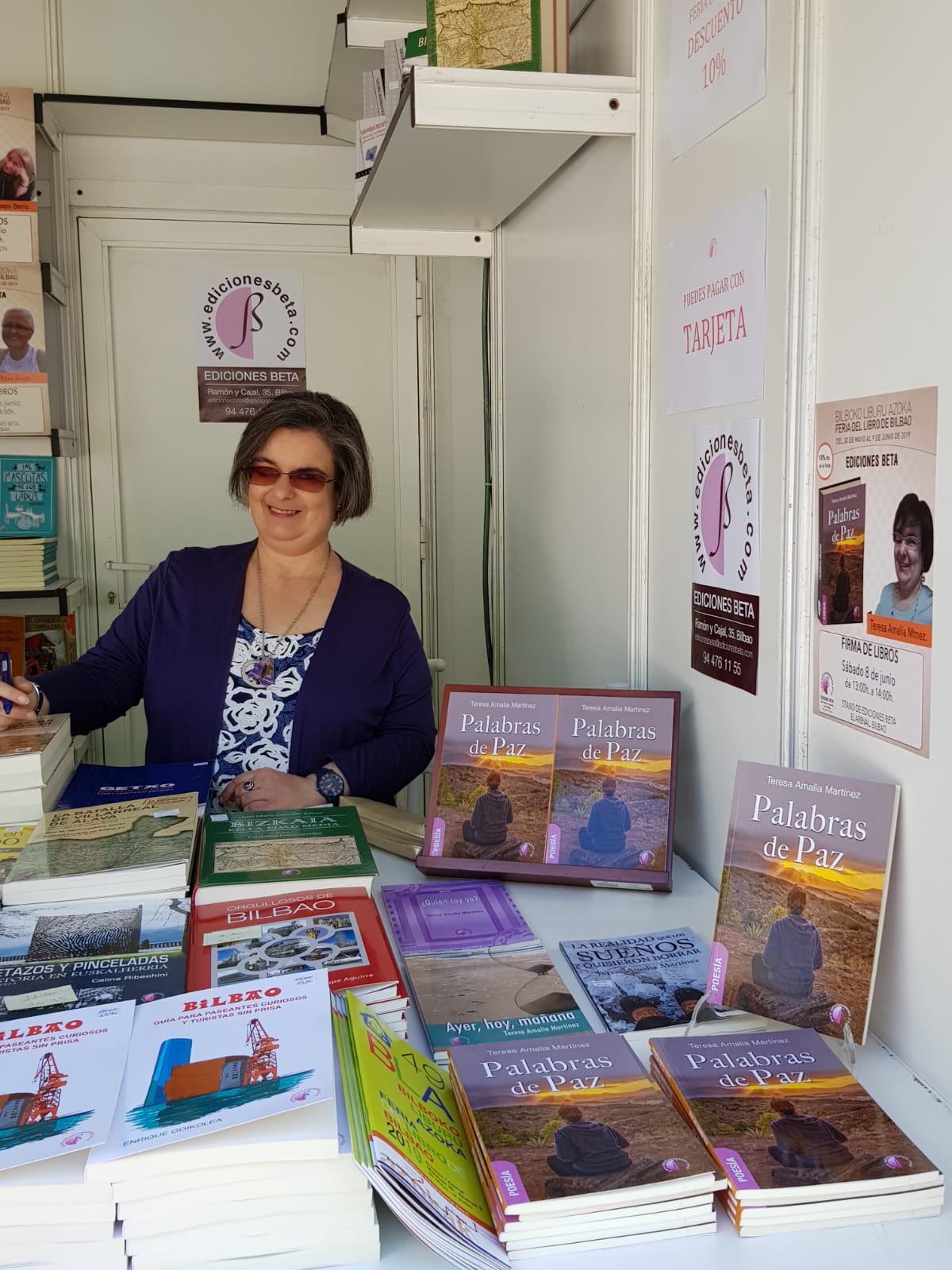 Firma de PALABRAS DE PAZ en 49 Feria del Libro de Bilbao (2019-06-08) Firma de ejemplares del poemario Palabras de paz de Teresa Amalia Martínez en la Feria del Libro de Bilbao.