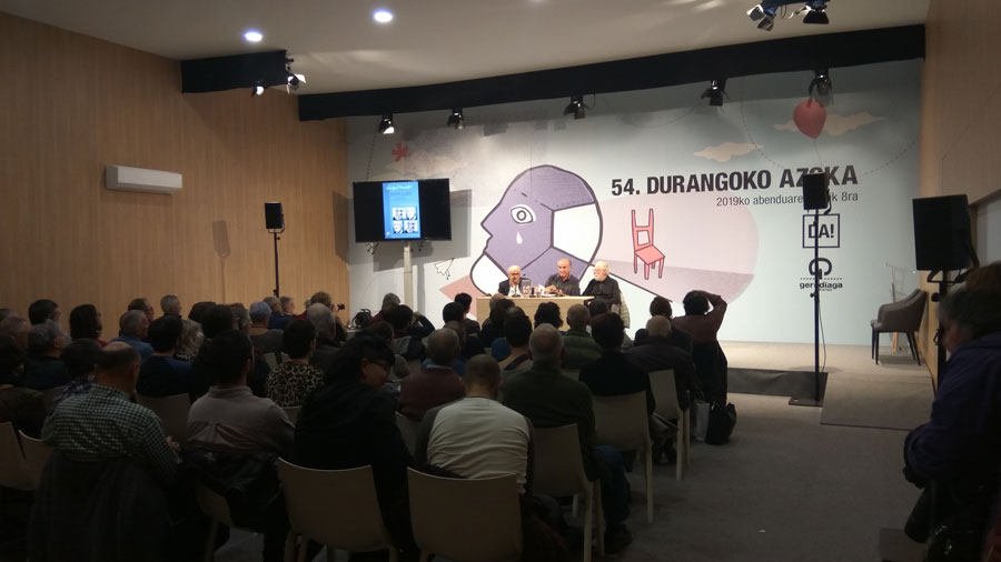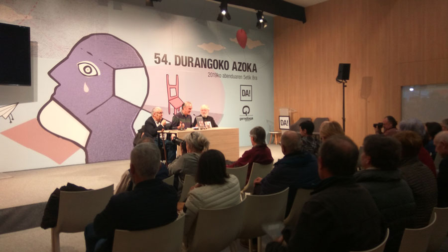 Presentacion de BITTOR ETA BIOK. Bittor Kapanaga Euskal Sokratesen gogoeta ondarea en 57. DURANGOKO AZOKA (2019-12-06)Gontzal Mendibilek Bittor eta biok liburua eta Biok diskoa aurkeztu zituen 54. Durangoko Liburu Azokako Areto Nagusian.