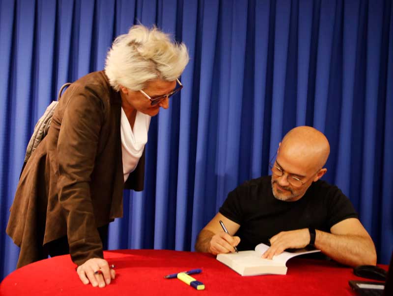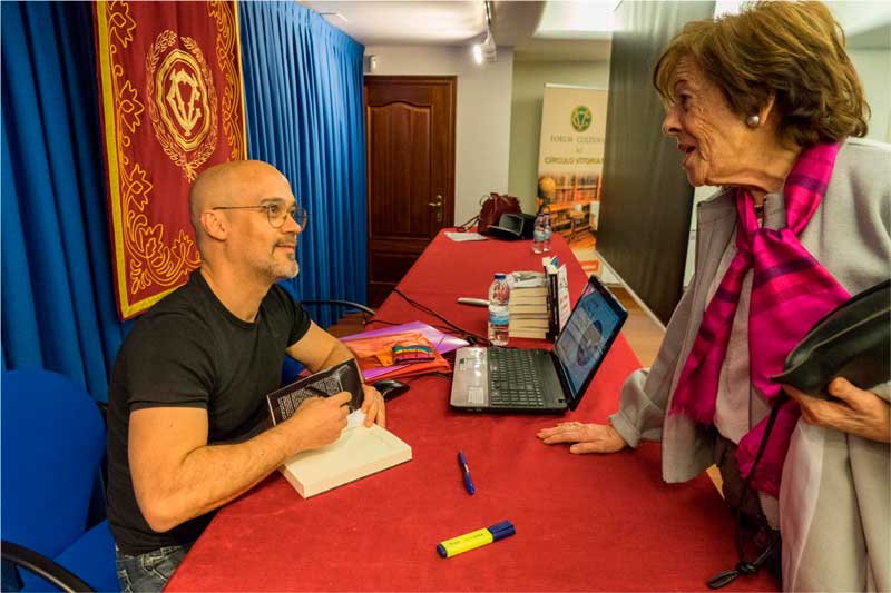 A todos nos pasa que de vez en cuando tenemos un presentimiento de algo que nos va a suceder. Eso me pasó a mí, tuve un presentimiento bueno ese día, sabía que la presentación iba a ir sobre ruedas. Solo llegar a la capital alavesa me recibió con un abrazo muy cálido Carmen Villahizán, quien ejerció de anfitriona. Estuvimos casi seis horas hablando y escuchándonos, se pasó el tiempo volando. Fue muy agradable, Carmen es sabiduría, elegancia y una persona afable y cercana.