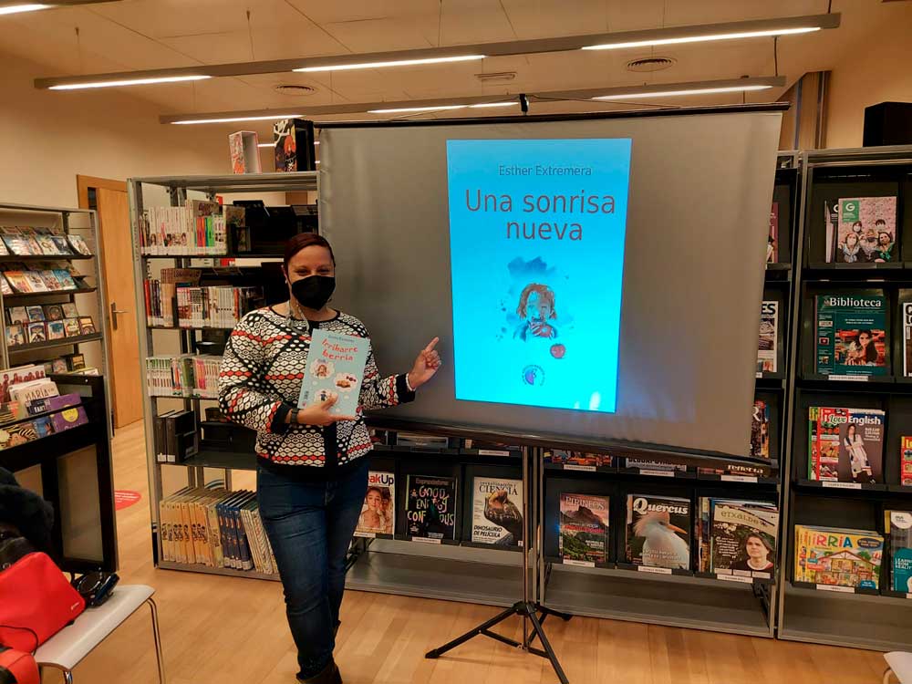 Presentacion de IRRIBARRE BERRIA / UNA SONRISA NUEVA en Biblioteca de la Casa de Cultura de Muskiz (2021-03-24)Presentación del poemario infantil Irribarre berria / Una sonrisa nueva de Esther Extremera en la Biblioteca de la Casa de Cultura de Muskiz (Bizkaia).