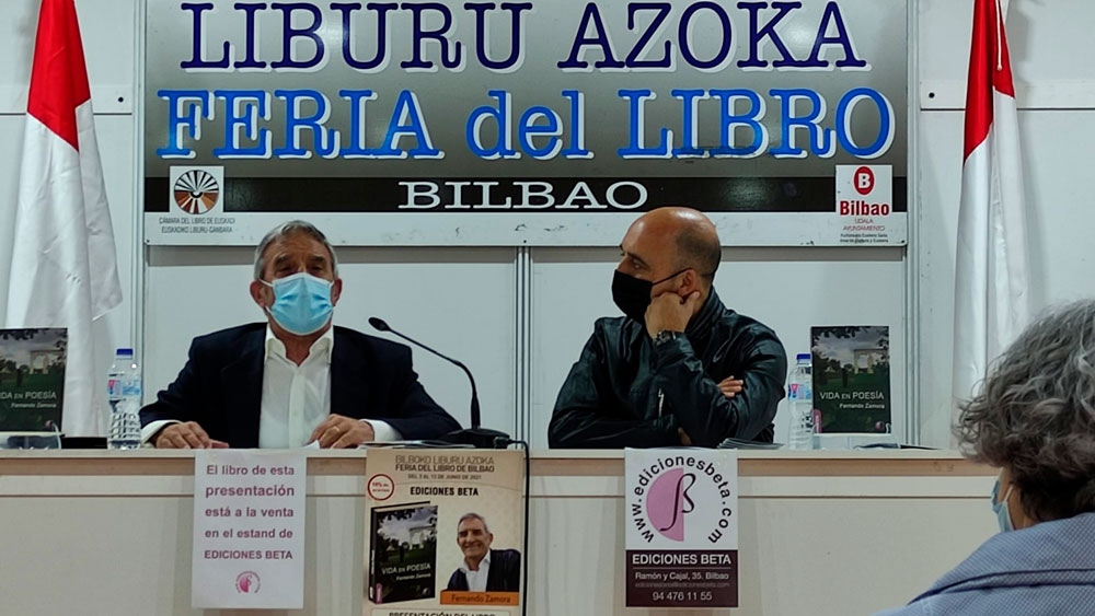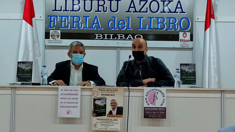 Presentacion de VIDA EN POESÍA en 51 Feria del Libro de Bilbao (2021-06-03) Presentación del poemario Vida en poesía de Fernando Zamora en la Feria del Libro de Bilbao.