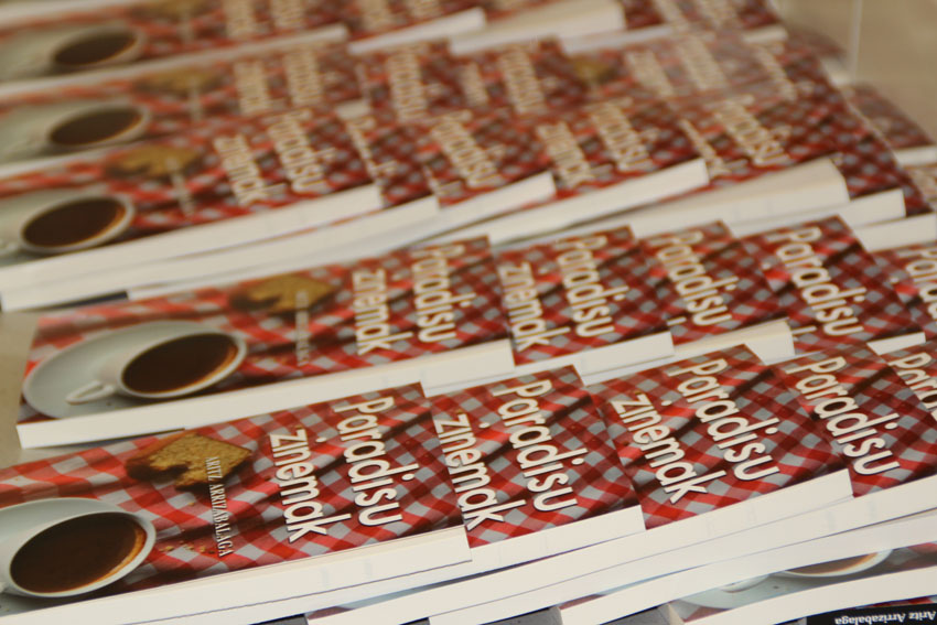 Presentacion de PARADISU ZINEMAK en Igorre Kultur Etxea (2014-04-04)Zoragarria. Ez zait beste hitzik bururatzen. Nire eta Paradisu Zinemak liburuaren lehen aurkezpena zen ostiralekoa. Ordua hurbildu ahala, urduritzen hasi nintzen nahiz eta hurbileko pertsonei lasai nengoela esan. Zazpiak jo zutenean, baina, artegatasun guztia lurrundu eta gozatu baino ez nuen egin. Familia, lagunak, herritarrak… Plazer hutsa izan zen areto betean liburuari buruzko zertzelada batzuk ematea, sinatzen egotea eta, gutxi bazen ere, denekin hitz egin ahal izatea.