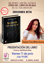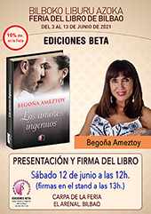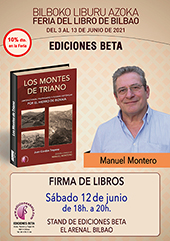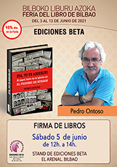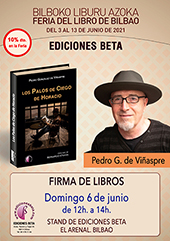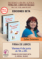 | 51 edición de la Feria del Libro de Bilbao, desde el jueves 3 al domingo 13 de junio de 2021. EDICIONES BETA, como en años anteriores, estará presente con estand propio, donde encontrarás todas nuestras novedades del último año y en él estarán nuestros autores firmando ejemplares de sus libros. Las presentaciones de libros serán en la carpa central de la feria. Horario de la Feria: de 11:00 a 14:00 h. y de 17:00 a 20:00 h. (10% de descuento en feria).
