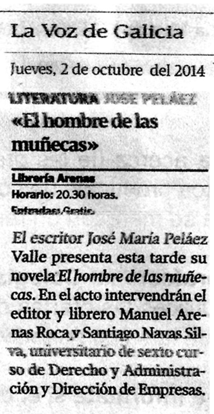 LA VOZ DE GALICIA. Reseña del libri "EL HOMBRE DE LAS MUÑECAS"