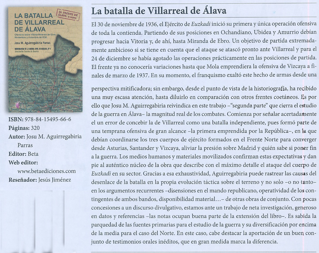 El título completo de la obra es ‘La Batalla de Villarreal de Álava. Ofensiva sobre Vitoria-Miranda de Ebro. Noviembre y diciembre de 1936’, de ediciones Beta. Está en todas las librerías al precio de 25 euros.