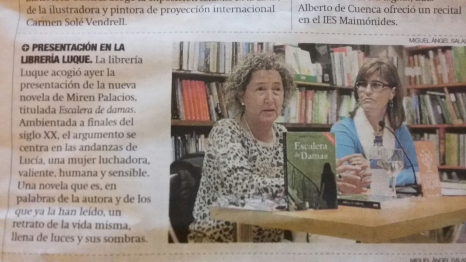 20-11-2015. Artículo de la presentación del libro "Escalera de Damas" en la Libreria Luque de Córdoba.