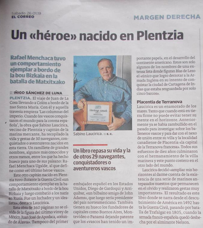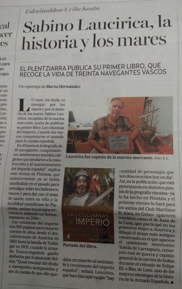 Sabino Laucirica, la historia y los mares. El plentziarra publica su primer libro, que recoge la vida de treinta navegantes vascos.