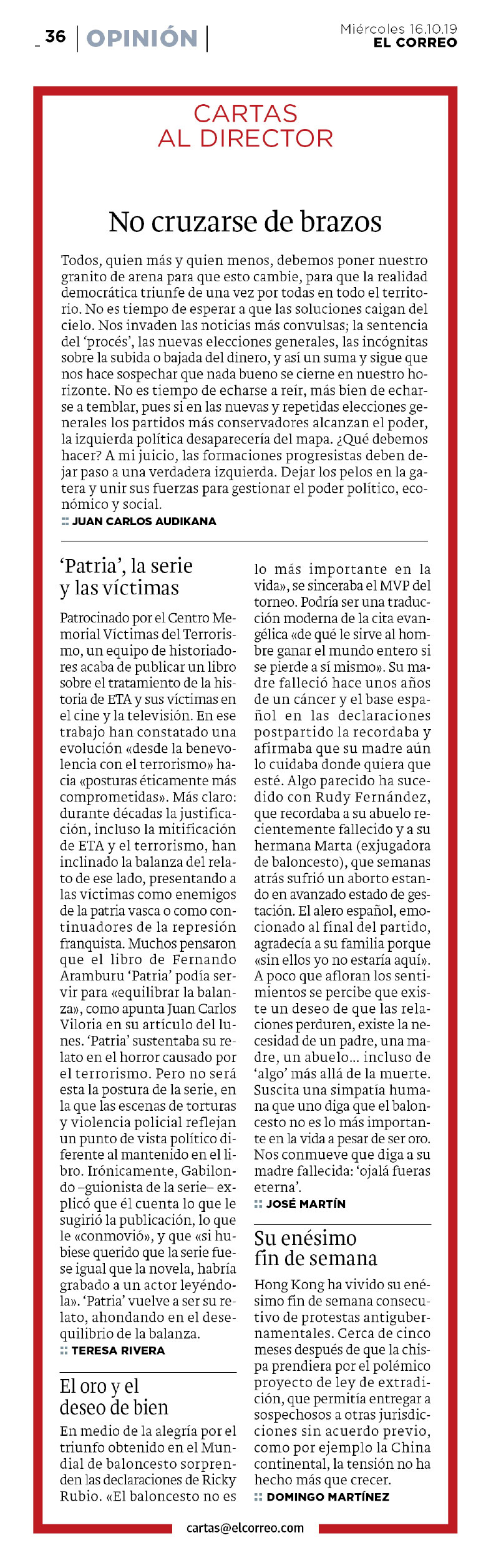 EL CORREO. Opinión (16.10.2019)