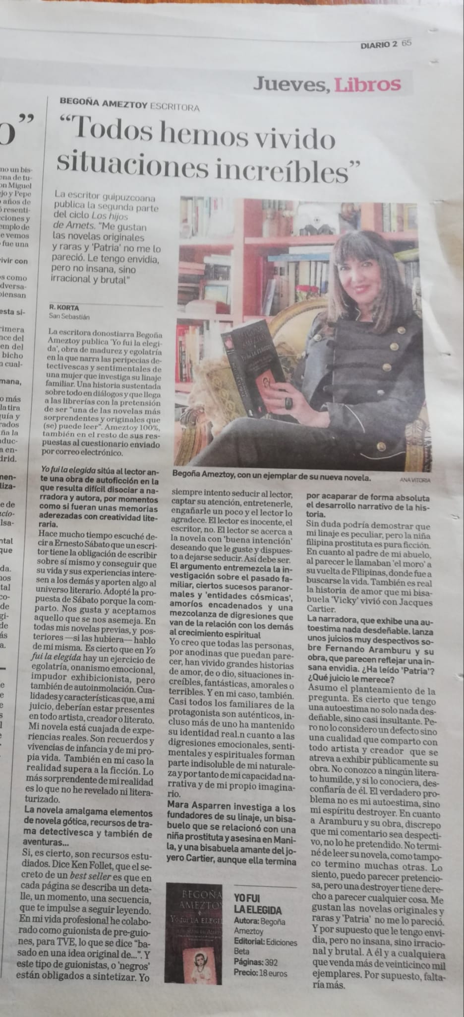 Entrevista a la escritora, artista, polemista, pintora y columnista Begoña Ameztoy, en el programa "Gipuzkoa a Diario" de Teledonosti. (En el vídeo a partir de 1hora y 25 minutos).